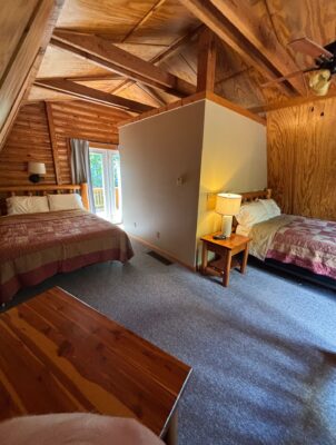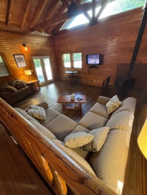 The PA Barn at Valley View Cabins is among the finest Hocking Hills cabins to rent for your getaway, offering accommodation for up to six guests. With two bathrooms, a snug downstairs bedroom featuring a Full-size bed, and an inviting upstairs bedroom graced by two Queen-size beds, it ensures a comfortable and enjoyable retreat. Unwind and savor the great outdoors at the outdoor stone fire pit, where you can gather, grill, and create lasting memories, adding an extra layer of relaxation and enjoyment to your stay.