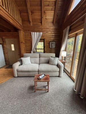 Similar to Van Buren 1, this is one of our best Hocking Hills cabin rentals for two. With one bathroom and a captivating spiral staircase leading to a one-bedroom loft featuring a cozy Queen-size bed, it’s perfect for a romantic couple’s getaway. Indulge in soothing massages and unwind in the inviting hot tub, adding an extra layer of relaxation and romance to your stay.