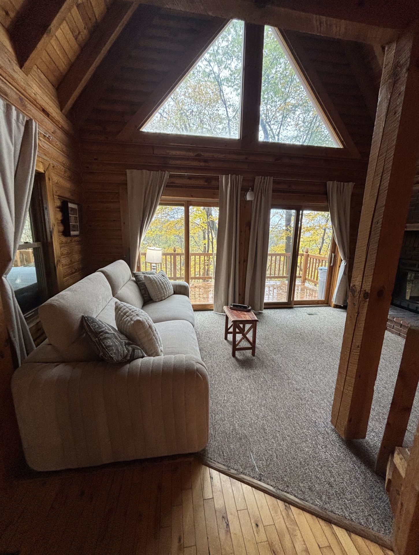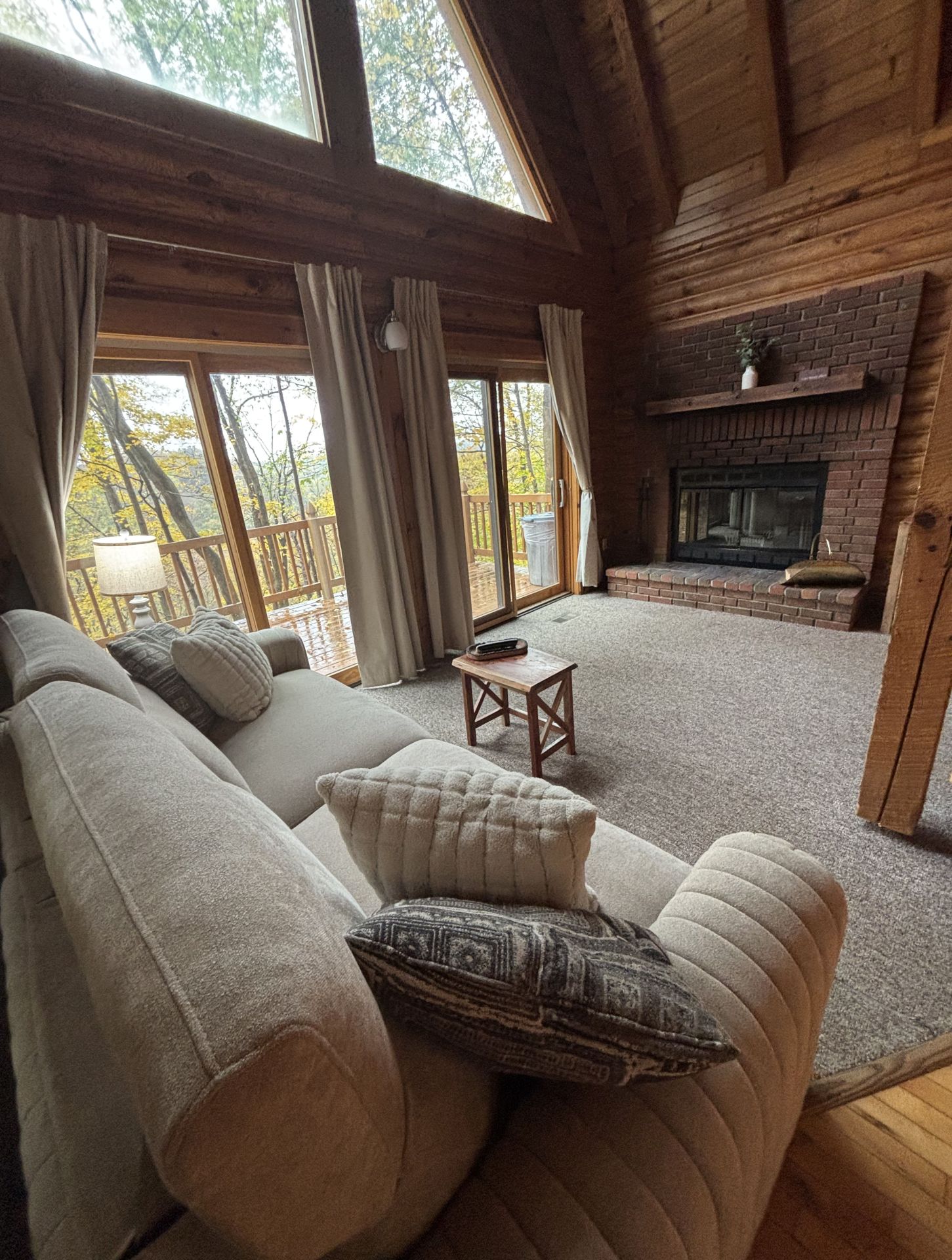 This cabin is on the same road as the Office, Hocking Hills Wedding Chapel, and Barn at Rush Creek; Near the top of the paved hill on the left. Find Van Buren 2 on our property map!